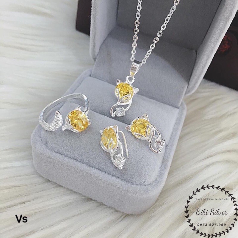 - Bộ trang sức hồ ly bạc gắn đá phong thủy đủ màu theo mệnh – Bộ trang sức bạc bibi